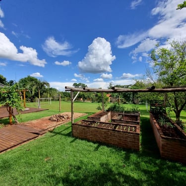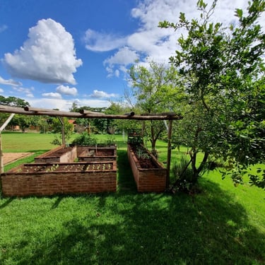 🔸Pomar com frutas frescas e horta para o seu consumo.