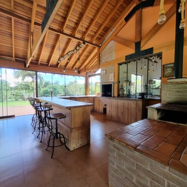 🔸Área gourmet completa com churrasqueira e forno a lenha, para reunir amigos e familiares.